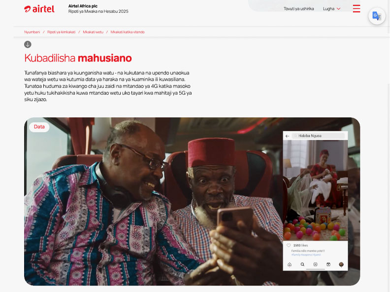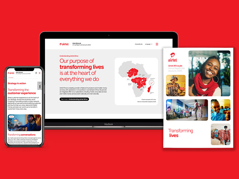The report is fully interactive, using animation and video to bring Airtel Africa’s story to life, transforming their stakeholder engagement. For example, an interview with the CEO is featured along with video clips conveying the benefits, convenience and joy its mobile services bring to customers.