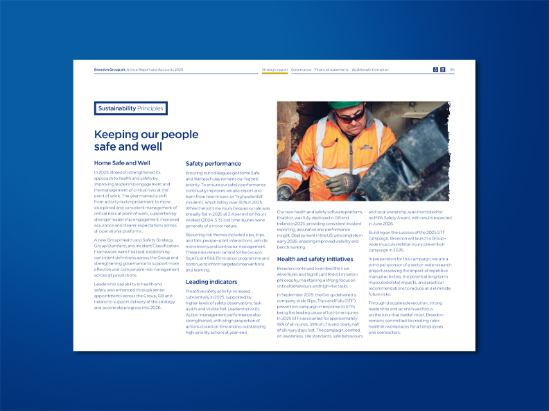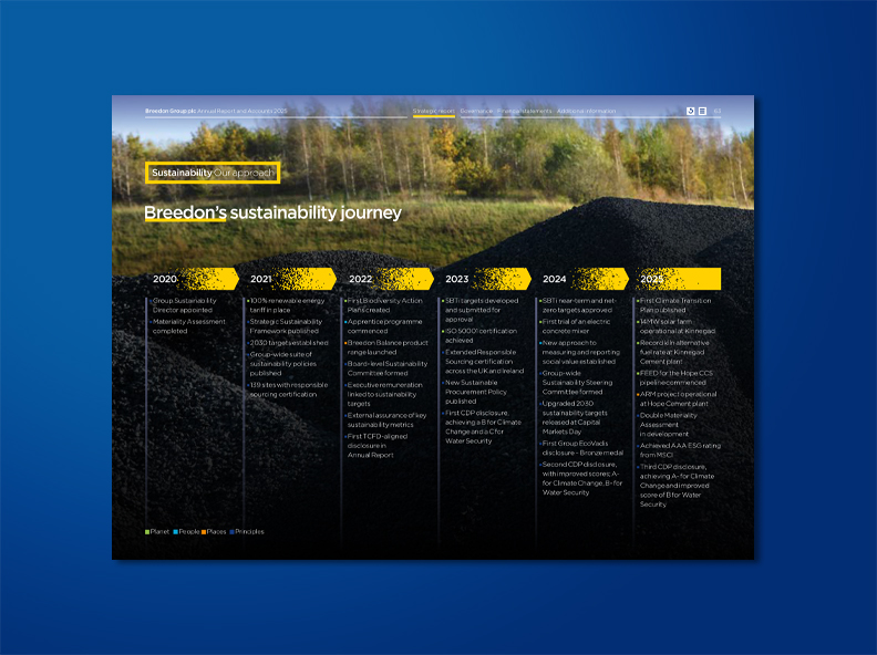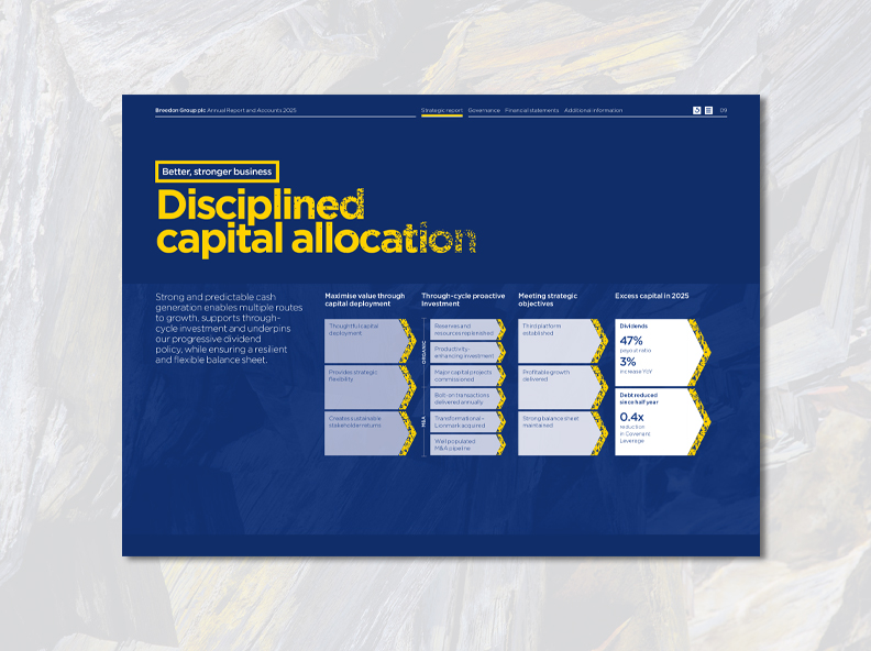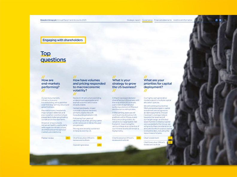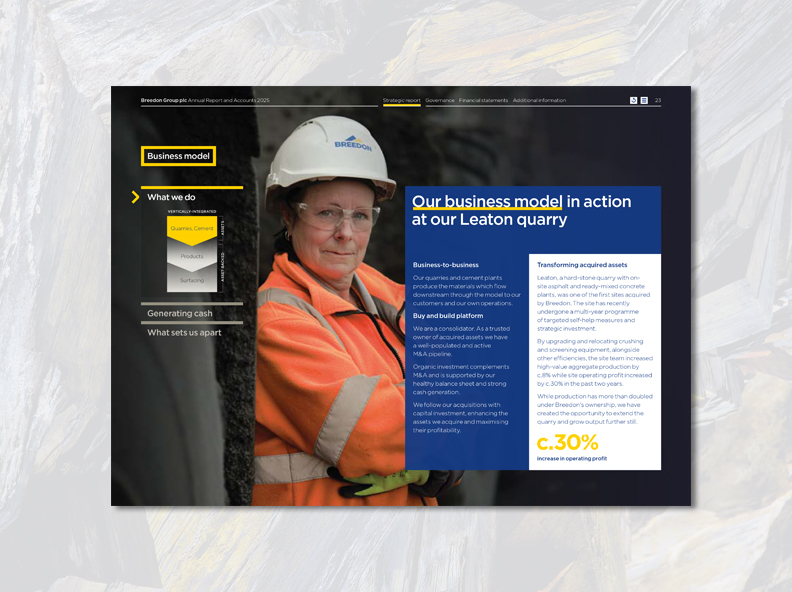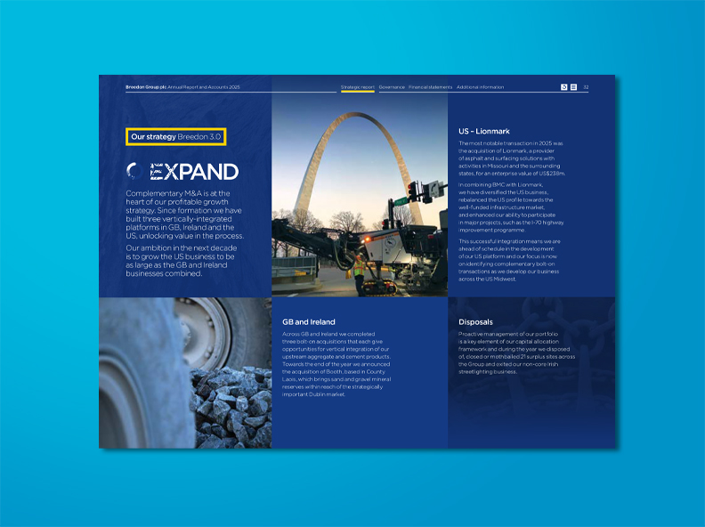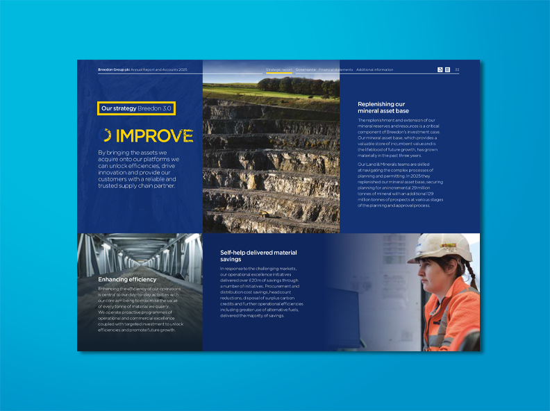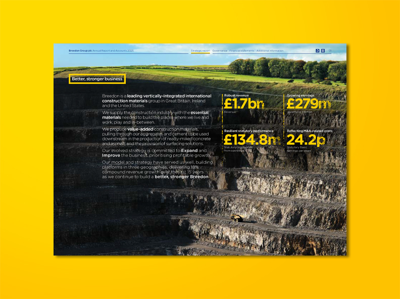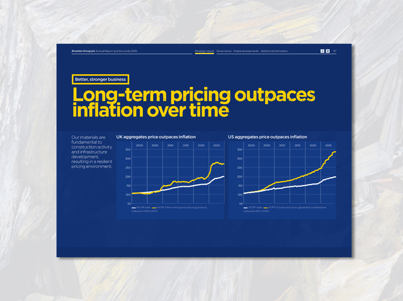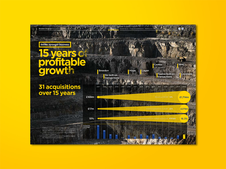 This was achieved principally by doubling down on the most compelling messaging at the investor relations team’s disposal, giving over the first nine pages of the report to a series of crisp, meaningful assertions – backed by evidence – which prove that Breedon is a ‘better, stronger business’, well-positioned to succeed in the future.