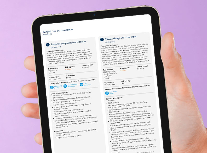 Mitie’s 2024 annual report communicates its new three-year plan, “From Facilities Management to Facilities Transformation”, setting out how Mitie is anticipating changing customers’ needs for their built environments; reduced carbon footprint; higher levels of assurance for security and cleanliness; and hybrid working.