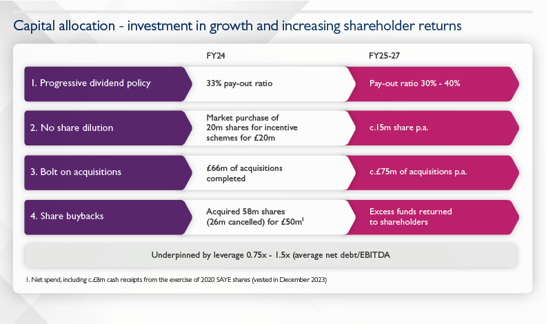 Descriptions of Mitie’s core capabilities include links to customer needs and growth drivers; market size, position and competitors; and differentiating factors, supplemented by project spotlights.