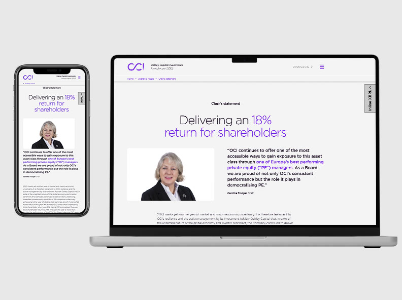 OCI’s latest report is created in Reportl, a new generation of reporting software, which enables corporate and sustainability reporting to take a leap forward into the digital age – full digital compliance and communications in one.