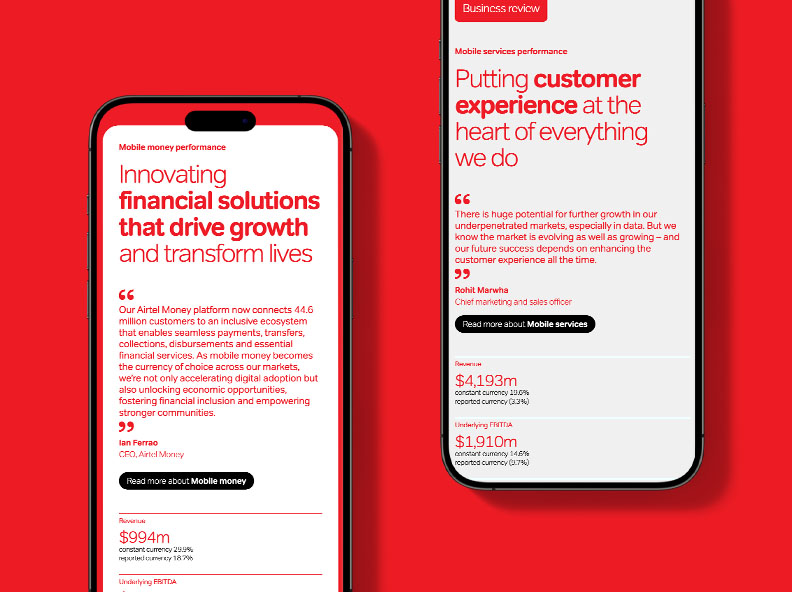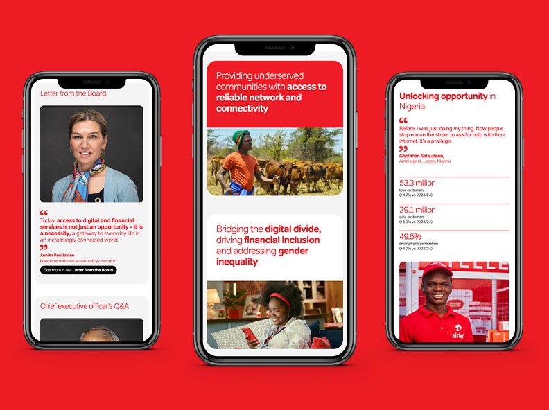 Airtel Africa provides essential voice, data and mobile money services to countries across sub-Saharan Africa, where societies are often underserved by telecoms and banking infrastructure. Airtel is transforming lives, enabling greater connectivity, digitisation and financial inclusion.