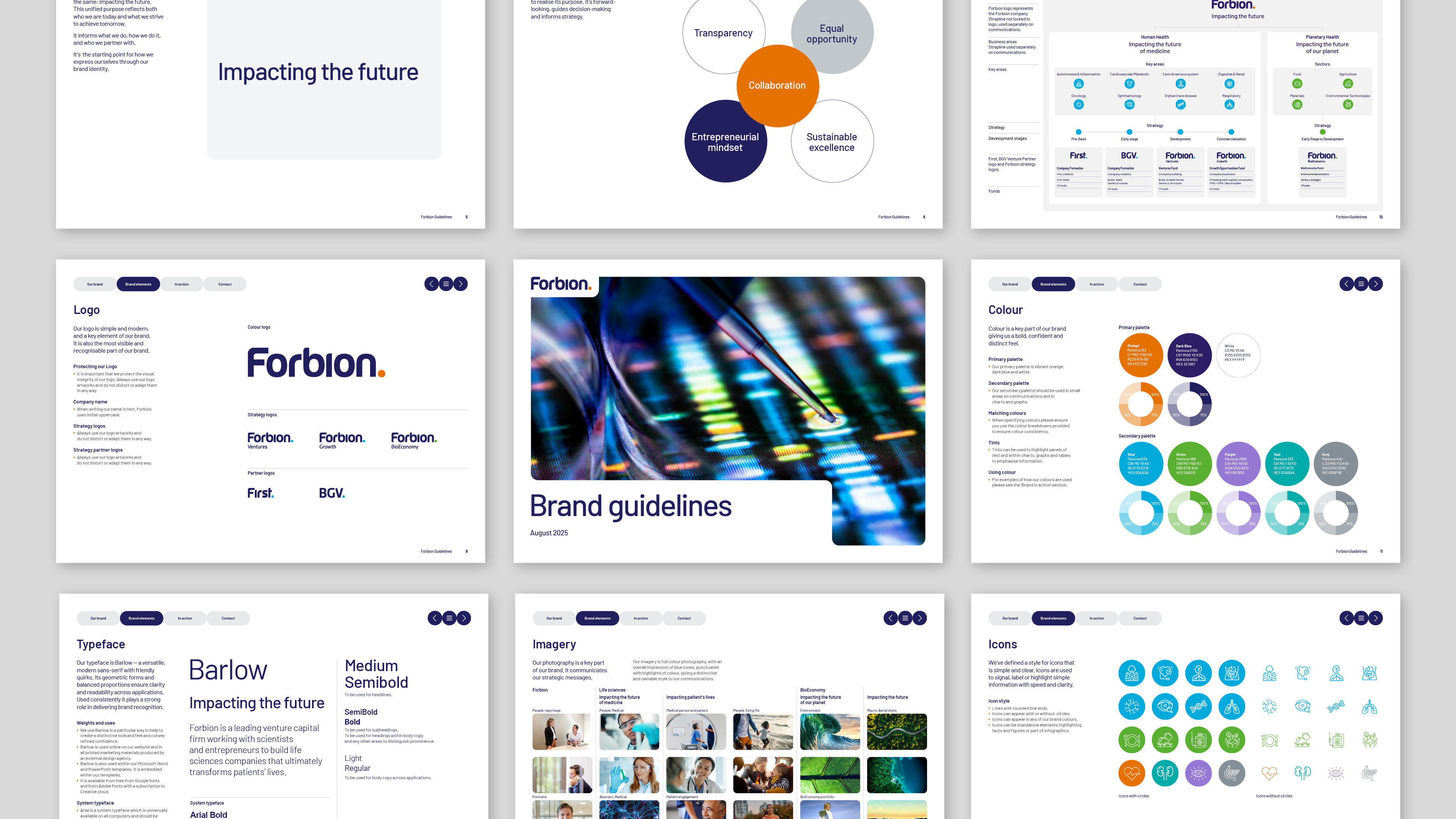 Our work began with reinvigorating the visual identity – retaining the existing logo but introducing a vibrant new colour palette, contemporary typography, and a curated mix of abstract and real-world imagery. This modernised the brand while communicating Forbion’s mission to be a business that is truly “impacting the future.”