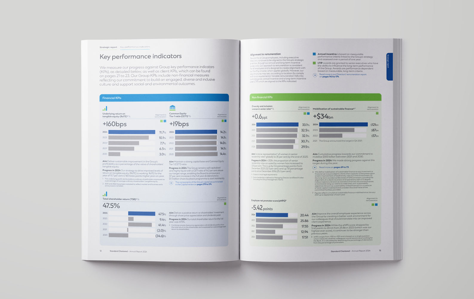Our partnership with the bank is focussed on its extensive reporting suite, all published on the same day as the results announcement, demanding incredible planning, collaboration and skill from everyone involved. We work alongside Standard Chartered’s team in London, Hong Kong, Singapore, Chennai and Washington DC to deliver the full suite comprising the PLC report, Strategic report, Bank annual report, Pillar 3 report, online versions of these reports plus other ESG documents and the Press release.